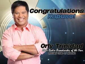 Pinarangalan bilang Best Male Radio Broadcaster of the Year si Super Radyo dzBB anchor Orly Trinidad sa Rotary Club of Manila Journalism Award. Read more