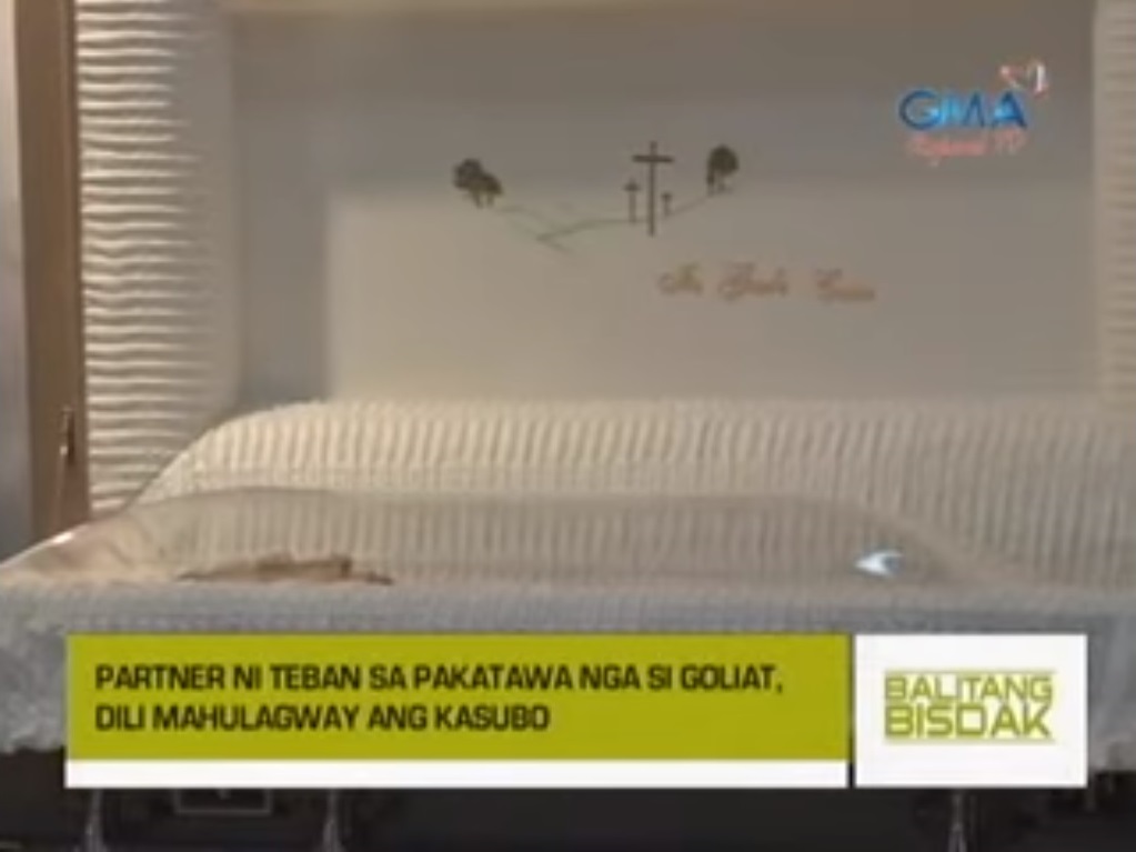 Wala kapugngi ang pagminatay og hilak ni Goliat pagsud-ong sa haya sa iyang partner sa pakatawa.