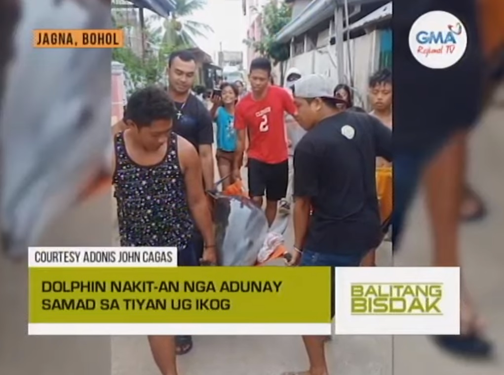 Samdan sa ikog ug tiyan nga dolphin ug namatay.