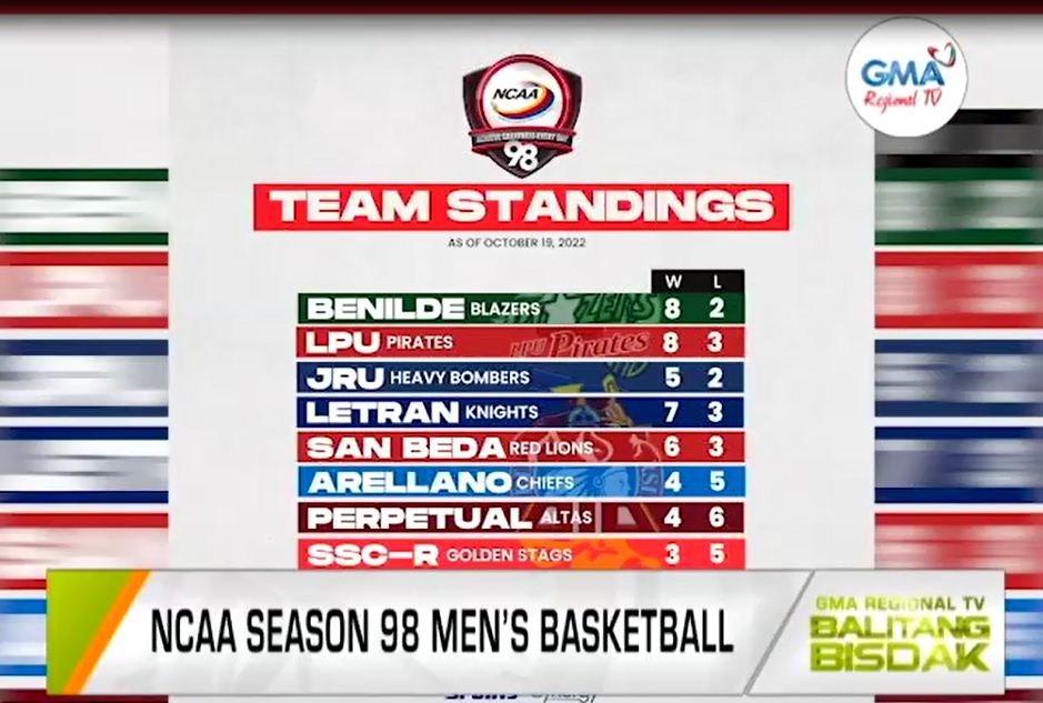 Sa nagpadayon nga NCAA Season 98 men’s basketball, pabilin nga nag-una ang Benilde Blazers sa team standings. Dugang mga maaksyon nga mga duwa ugma, 12NN, live sa GTV. See what's fresh from your firsthand source of local news, events, and activities— visit the official website of GMA Regional TV: www.gmaregionaltv.com For breaking news stories and the latest updates on Eleksyon 2022: https://www.gmanetwork.com/news/eleksyon2022/ Subscribe to GMA Regional TV's official YouTube channel: https://www.youtube.com/c/GMARegionalTV Follow us on Facebook, Twitter, and Instagram: @gmaregionaltv #GMARegionalTV #LocalNewsMatters