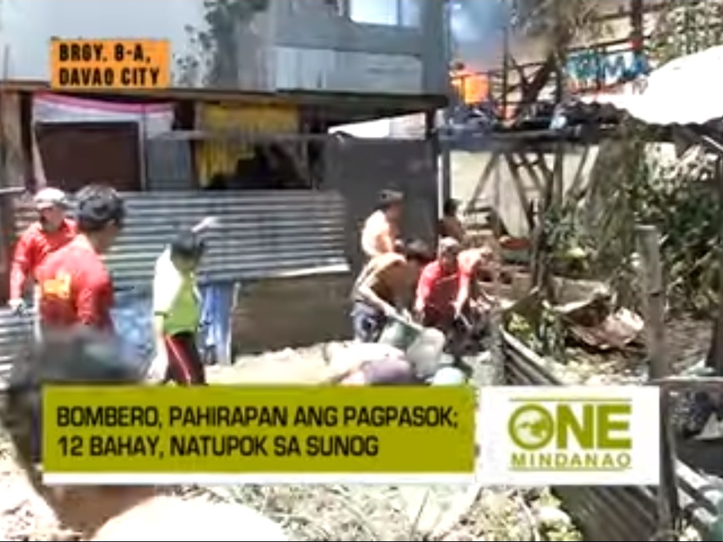 Bombero pahirapan ang pagpasok sa sunog sa Lower Madapo, Davao City. Nagtulungan na lamang gamit ang balde sa pag-apula sa sunog. 12 bahay ang natupok ng naturang sunog.