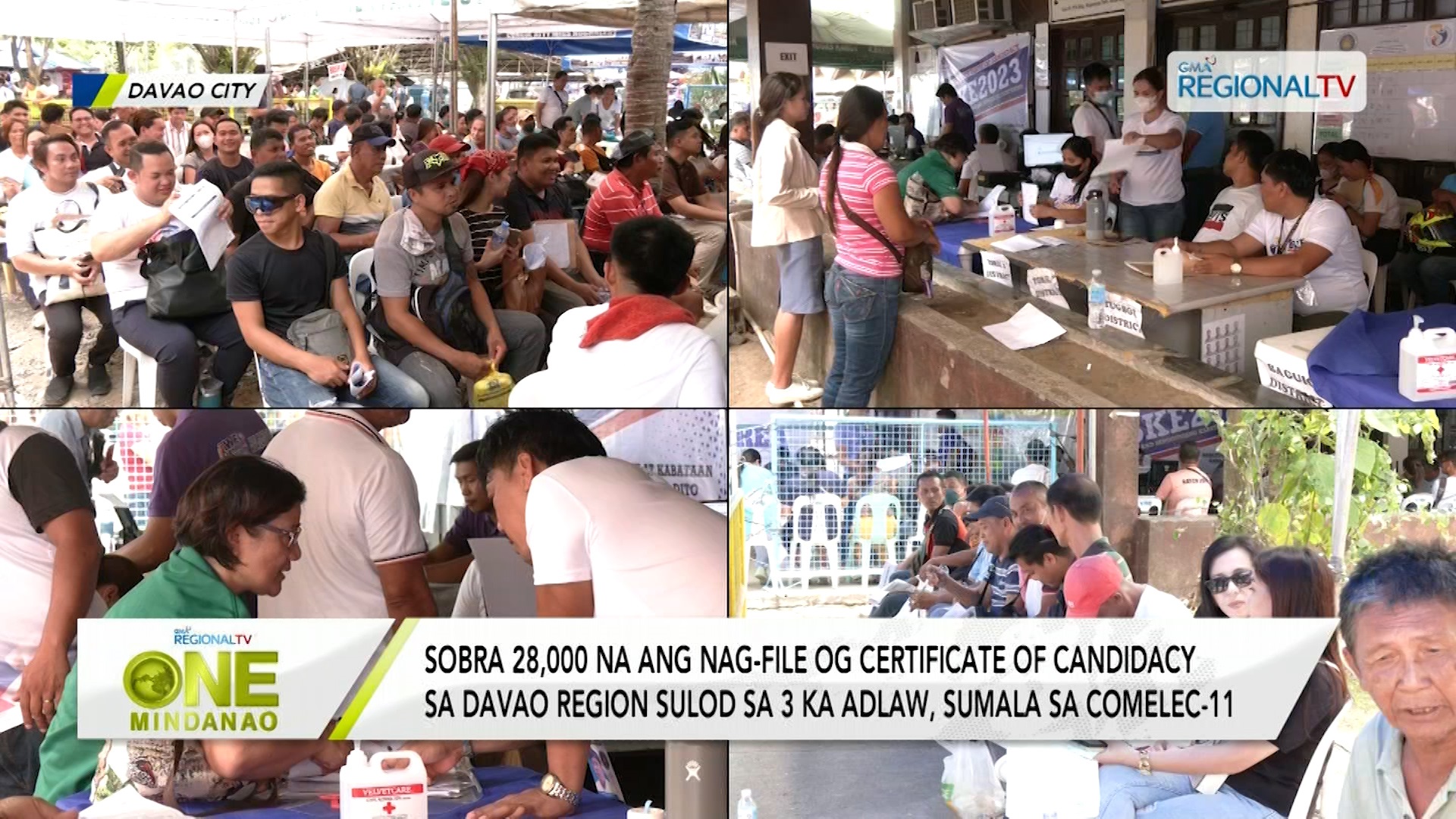 Sobra 28,000 na ang nag-file og Certificate of Candidacy sa Davao Region sulod sa 3 ka adlaw, sumala sa COMELEC-11. See what's fresh from your firsthand source of local news, events, and activities— visit the official website of GMA Regional TV: www.gmaregionaltv.com For breaking news stories and the latest updates on Eleksyon 2022: https://www.gmanetwork.com/news/eleksyon2022/ Subscribe to GMA Regional TV's official YouTube channel: https://www.youtube.com/c/GMARegionalTV Follow us on Facebook, Twitter, and Instagram: @gmaregionaltv #GMARegionalTV #LocalNewsMatters