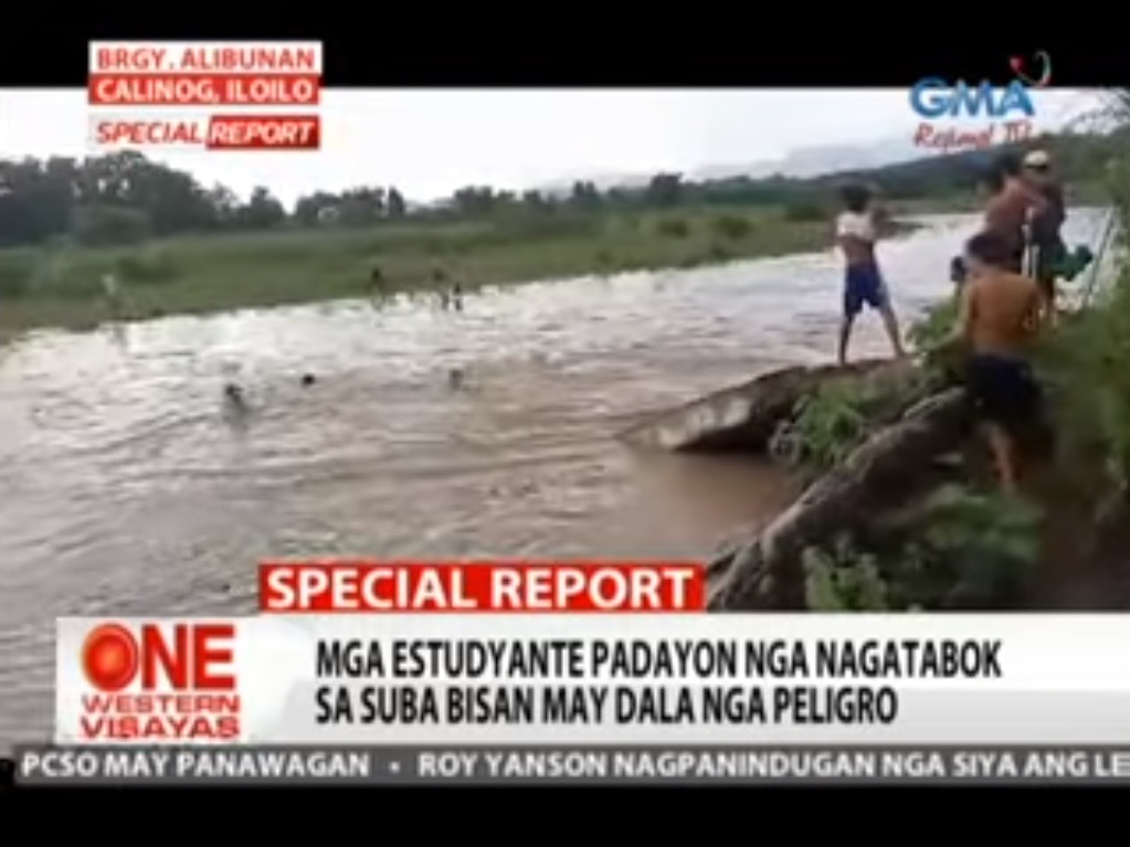 Mga estudyante padayon nga nagatabok sa suba bisan may dala nga peligro.