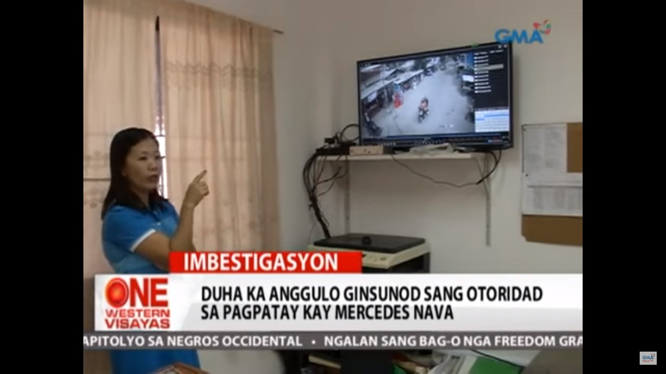 Duha ka anggulo ginsunod sang otoridad sa pagpatay kay Mercedes Nava. Pagpalagyo sang duha ka suspek nga nagpatay kay Mercedes Nava nakuhaan CCTV footage. City councilor Plaridel Nava nagapati nga ginpatay ang iya pakaisa agud ipabangud sa iya ang krimen samtang duha ka bodyguard sini gindakop sang kapulisan.