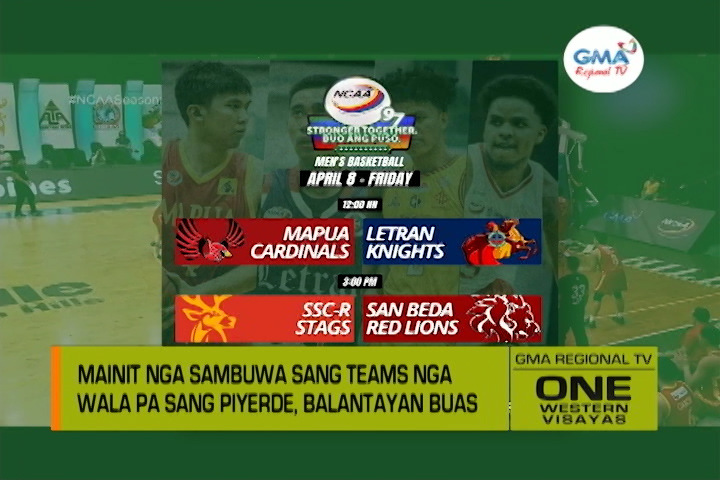 Mainit nga sambuwa sang teams nga wala pa sang piyerde, balantayan buas. NCAA Season 97 basketball games, malantaw live sa GTV kada Martes, Miyerkules, Biyernes, Sabado kag Dominggo. Replays sang NCAA Season 97 basketball games, malantaw sa GTV kada Lunes kag Huwebes. See what's fresh from your firsthand source of local news, events, and activities— visit the official website of GMA Regional TV: www.gmaregionaltv.com Subscribe to GMA Regional TV's official YouTube channel: https://www.youtube.com/c/GMARegionalTV Follow us on Facebook, Twitter, and Instagram: @gmaregionaltv #GMARegionalTV #LocalNewsMatters