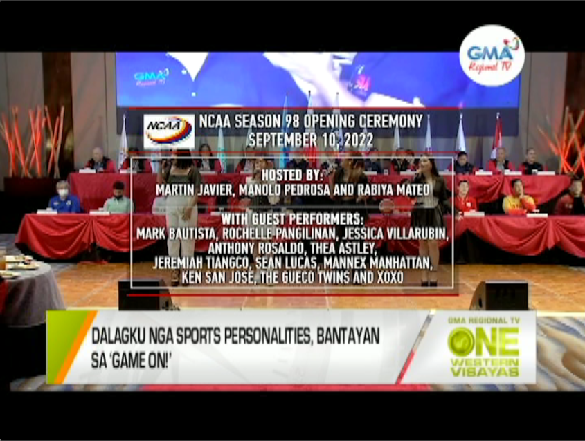 Opening ceremonies sang NCAA Season 98 sa Sabado, September 10, mangin star-studded. Dalagku nga sports personalities, bantayan sa ‘Game On!’ See what's fresh from your firsthand source of local news, events, and activities— visit the official website of GMA Regional TV: www.gmaregionaltv.com For breaking news stories and the latest updates on Eleksyon 2022: https://www.gmanetwork.com/news/eleksyon2022/ Subscribe to GMA Regional TV's official YouTube channel: https://www.youtube.com/c/GMARegionalTV Follow us on Facebook, Twitter, and Instagram: @gmaregionaltv #GMARegionalTV #LocalNewsMatters