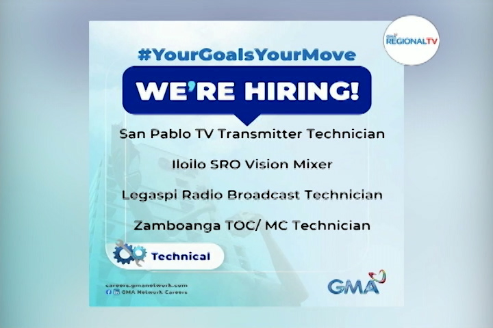 GMA Network, nagapangita sang applicants sa job vacancies. Mga interesado, pwede magpadala sang application sa careers.gmanetwork.com See what's fresh from your firsthand source of local news, events, and activities— visit the official website of GMA Regional TV: www.gmaregionaltv.com For breaking news stories and the latest updates on Eleksyon 2022: https://www.gmanetwork.com/news/eleksyon2022/ Subscribe to GMA Regional TV's official YouTube channel: https://www.youtube.com/c/GMARegionalTV Follow us on Facebook, Twitter, and Instagram: @gmaregionaltv #GMARegionalTV #LocalNewsMatters